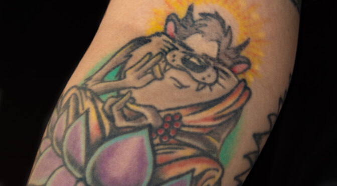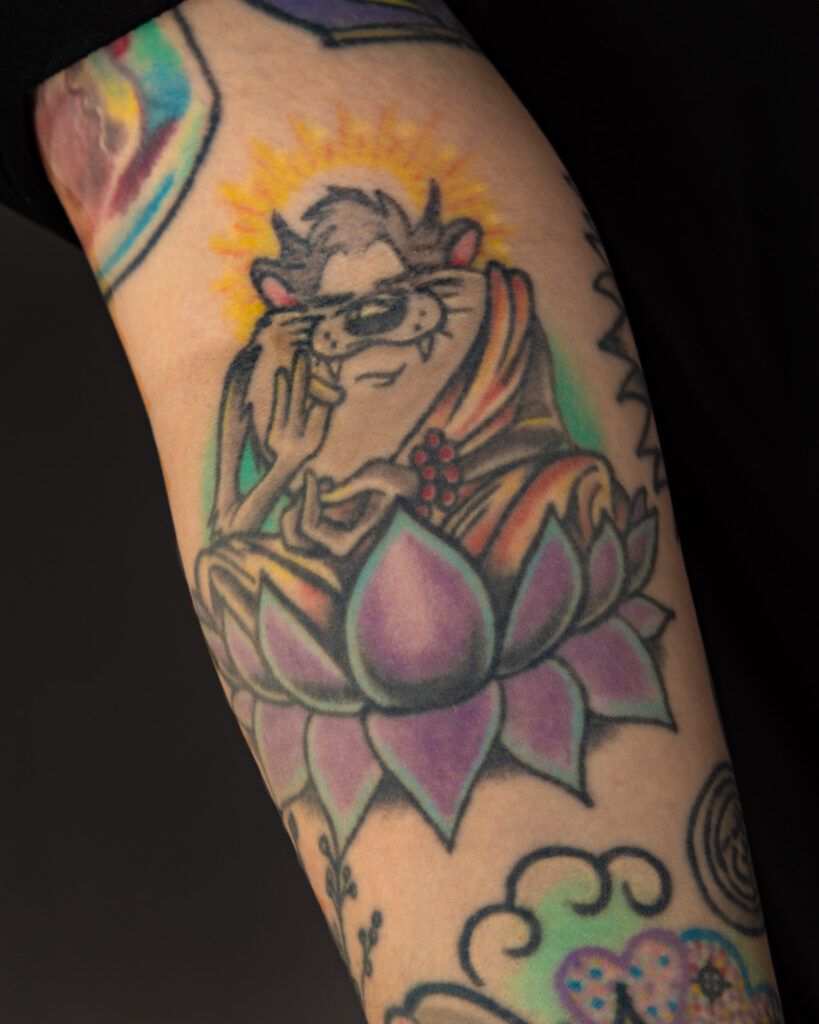 When he passed away, a few of our family members got tattoos in honor of him. I chose Taz dressed as a monk because it combined his favorite cartoon character and one of his last endeavors of becoming a Buddhist monk, searching for inner peace.