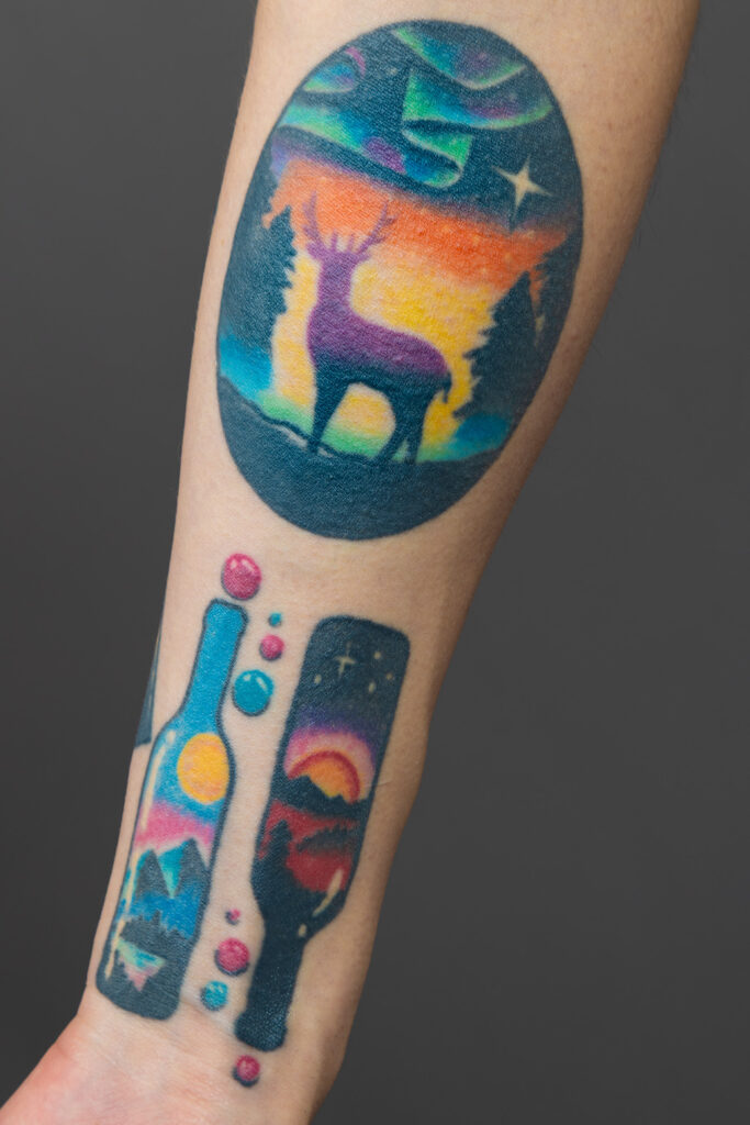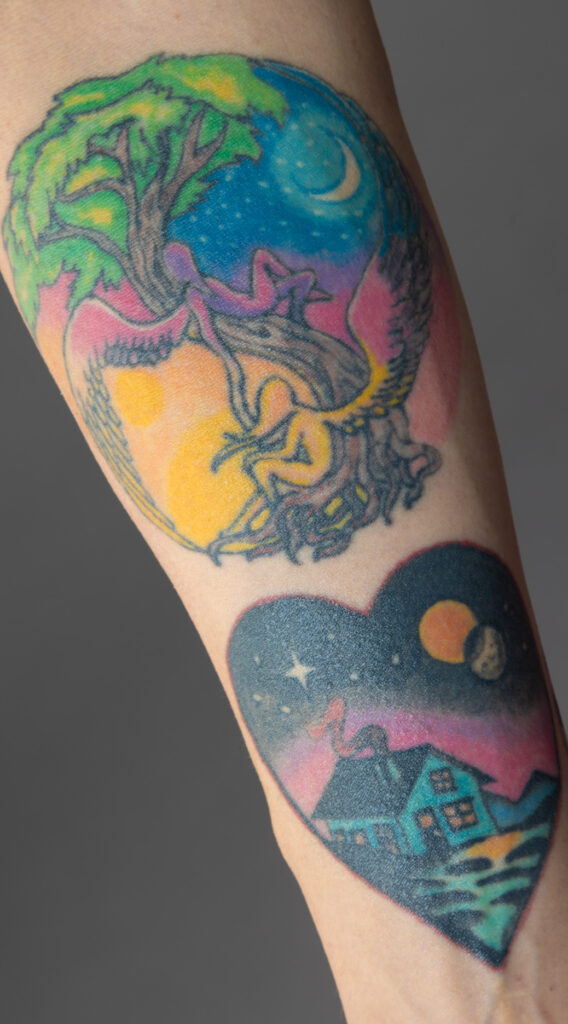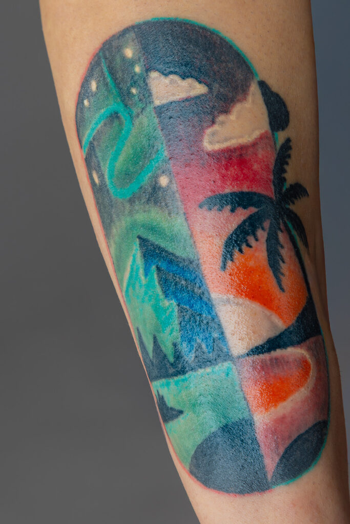 All of my tattoos are connected by the idea of showing how colorful and beautiful the Earth really is. We tend to get stuck in our lives and routines that we stop truly noticing the planet we live on. The sky, the land, night, day, even space itself slowly becomes a background. These tattoos are my way of bringing that beauty back into focus and reminding both myself and other people of how visually rich and alive the world actually is and why it’s worth protecting.