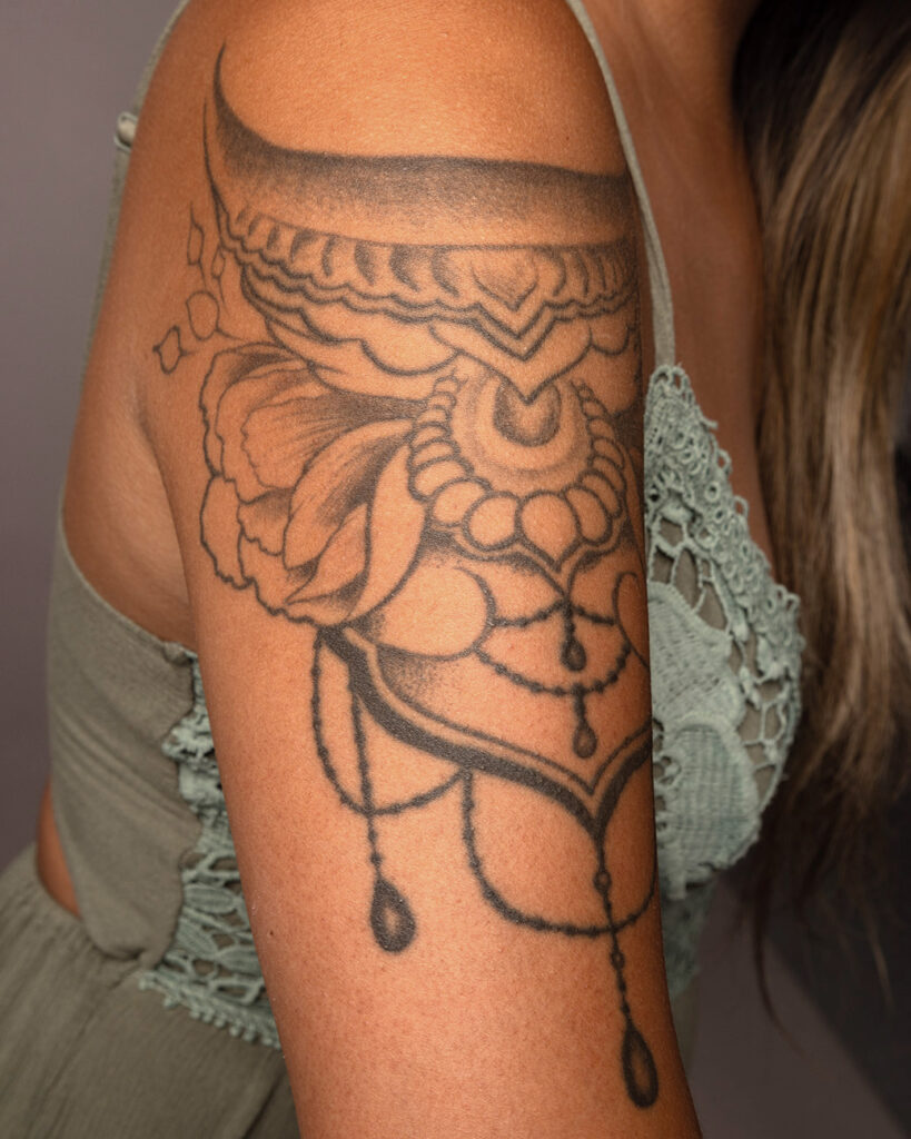 My tattoos are like living ornaments, etched onto my skin as symbols of beauty and meaning. Each one carries its own quiet poetry, a reflection of art I’ve chosen to wear. They make me feel radiant and distinct—like a thumbprint carved in color, a signature of who I am.